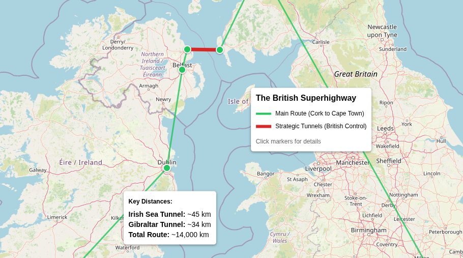 Currently, trade between Ireland and continental Europe must either traverse British roads or take lengthy sea routes around the British Isles. The tunnel would make the British route not merely convenient but essential, drawing Irish commerce inexorably through British infrastructure.