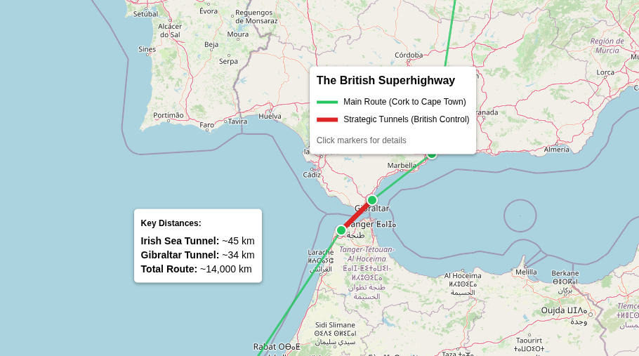 The tunnel would extend this network into Europe, with British Gibraltar as the mandatory transfer point.